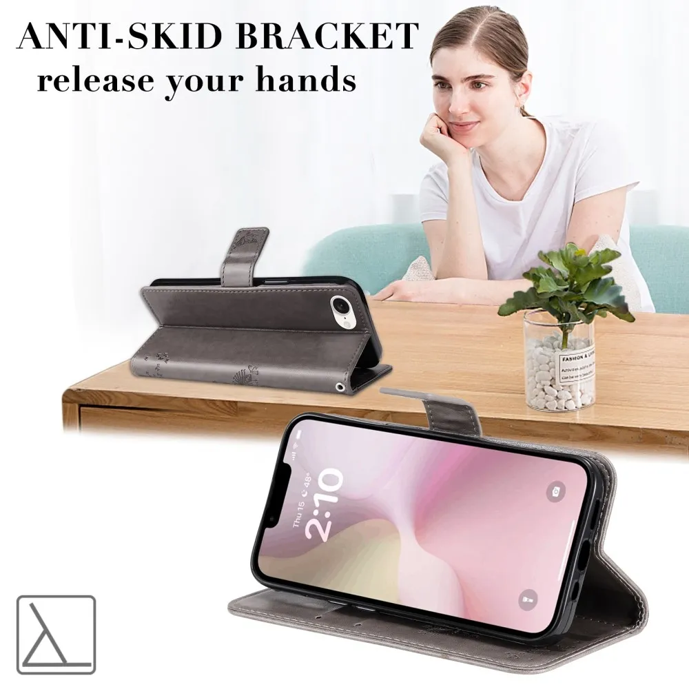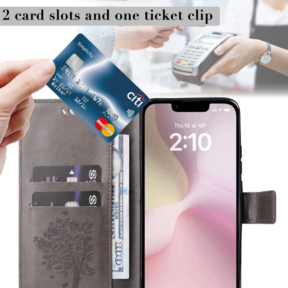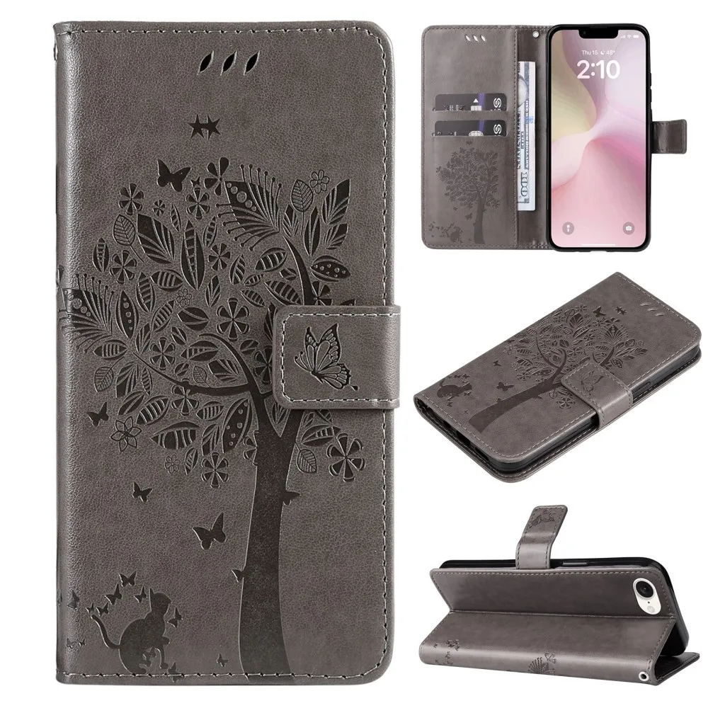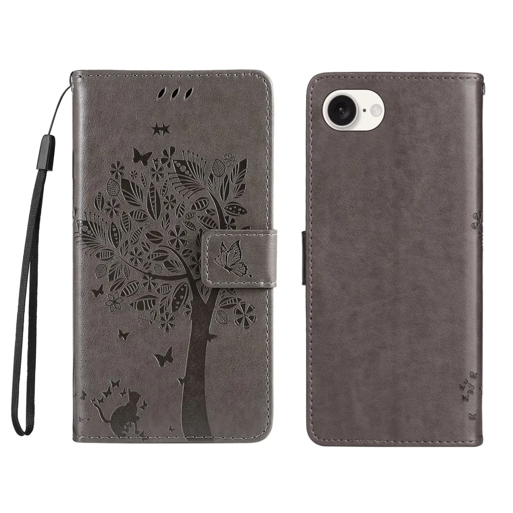 Szürke pénztárca tok Trees iPhone 16e készülékhez