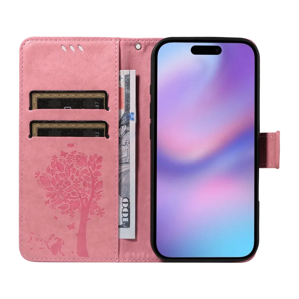 Rózsaszín pénztárca tok Trees iPhone 17-hez