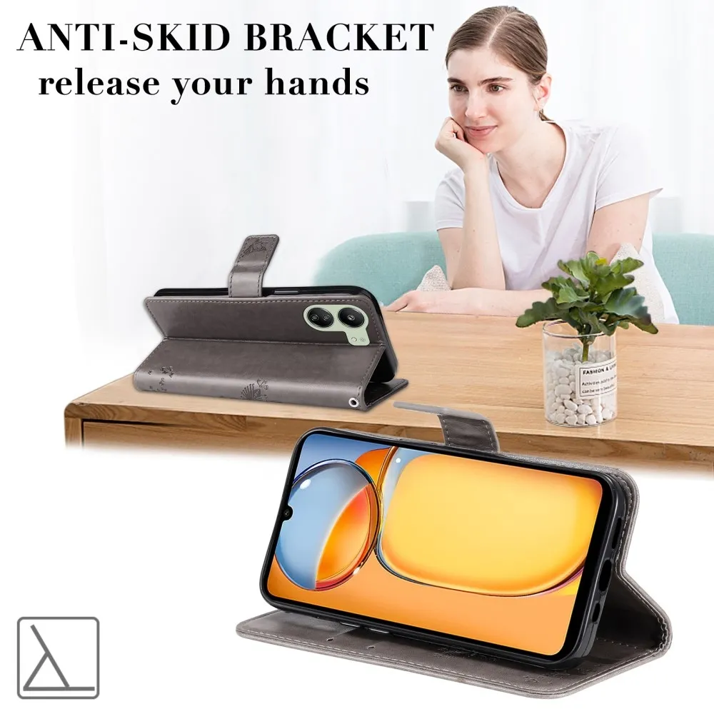 Szürke pénztárca tok fák Xiaomi Poco C65/Redmi 13C-hez