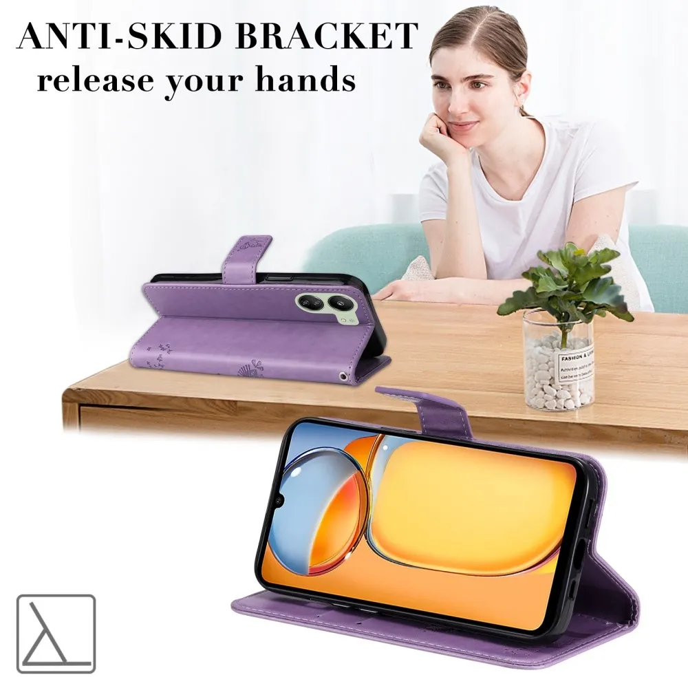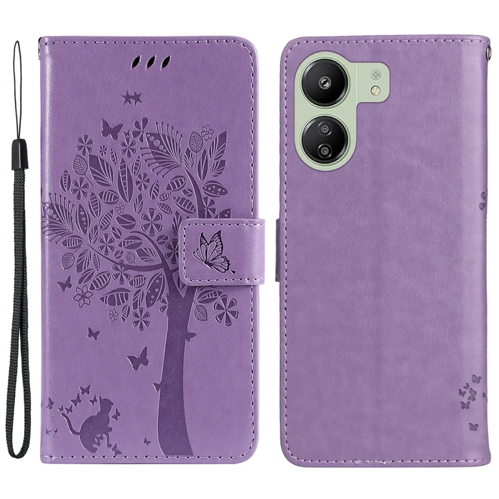 Világos lila pénztárca tok Trees a Xiaomi Poco C65/Redmi 13C számára