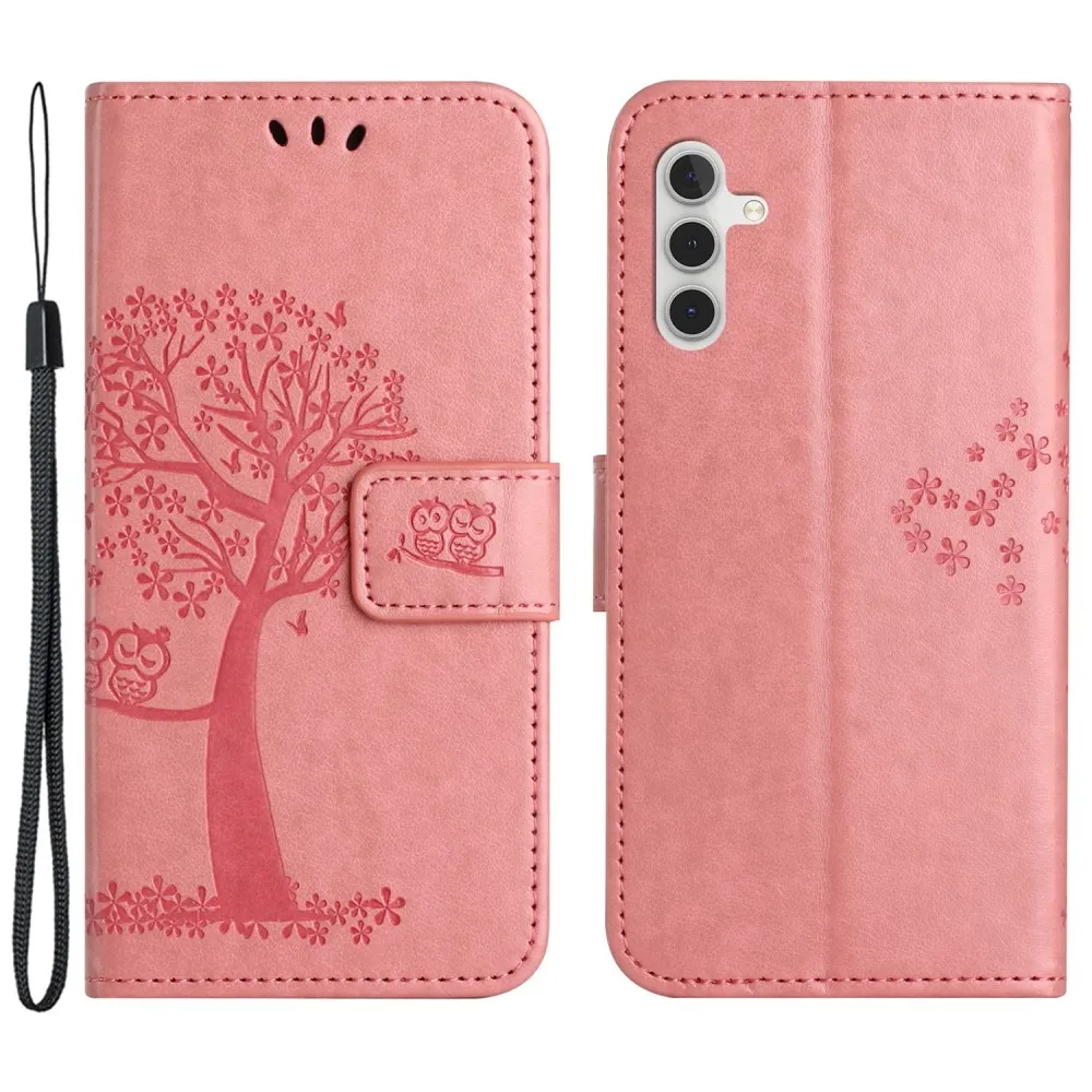 Rózsaszín pénztárca tok Tree Samsung Galaxy S23 FE számára