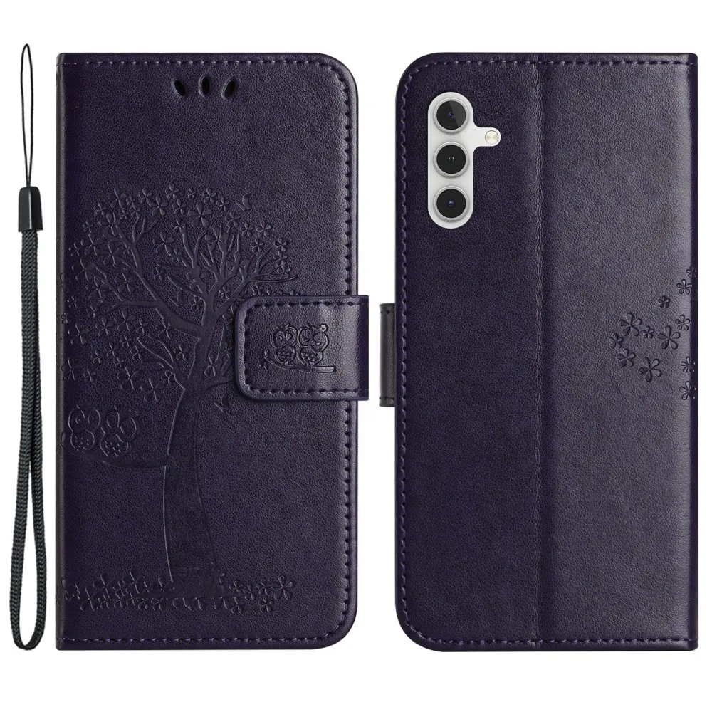 Sötét lila pénztárca tok Tree Samsung Galaxy S23 FE számára
