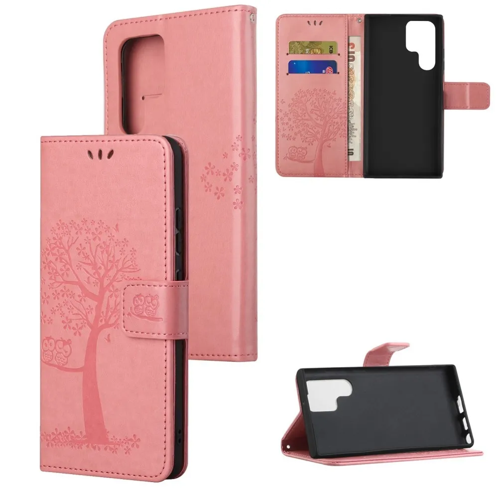 Rózsaszín pénztárca tok fa Samsung Galaxy S24 Ultra számára