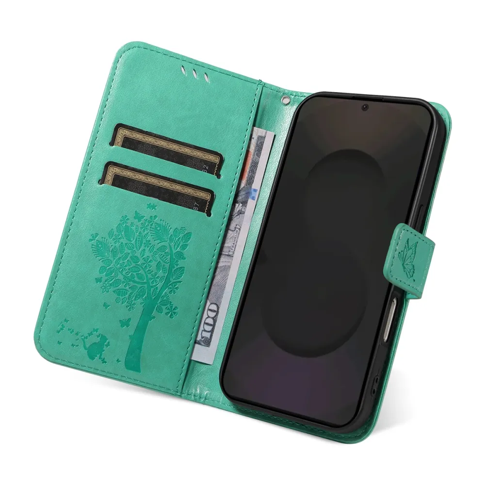 Kék-zöld pénztárca tok fa Samsung Galaxy S25 FE készülékhez