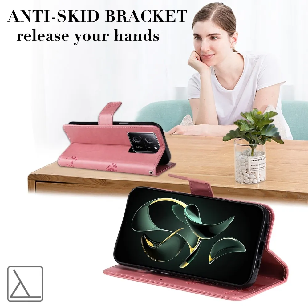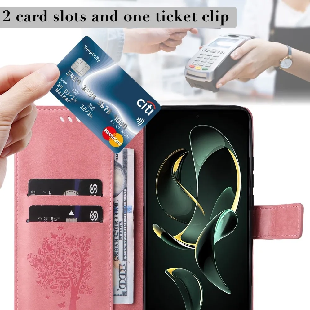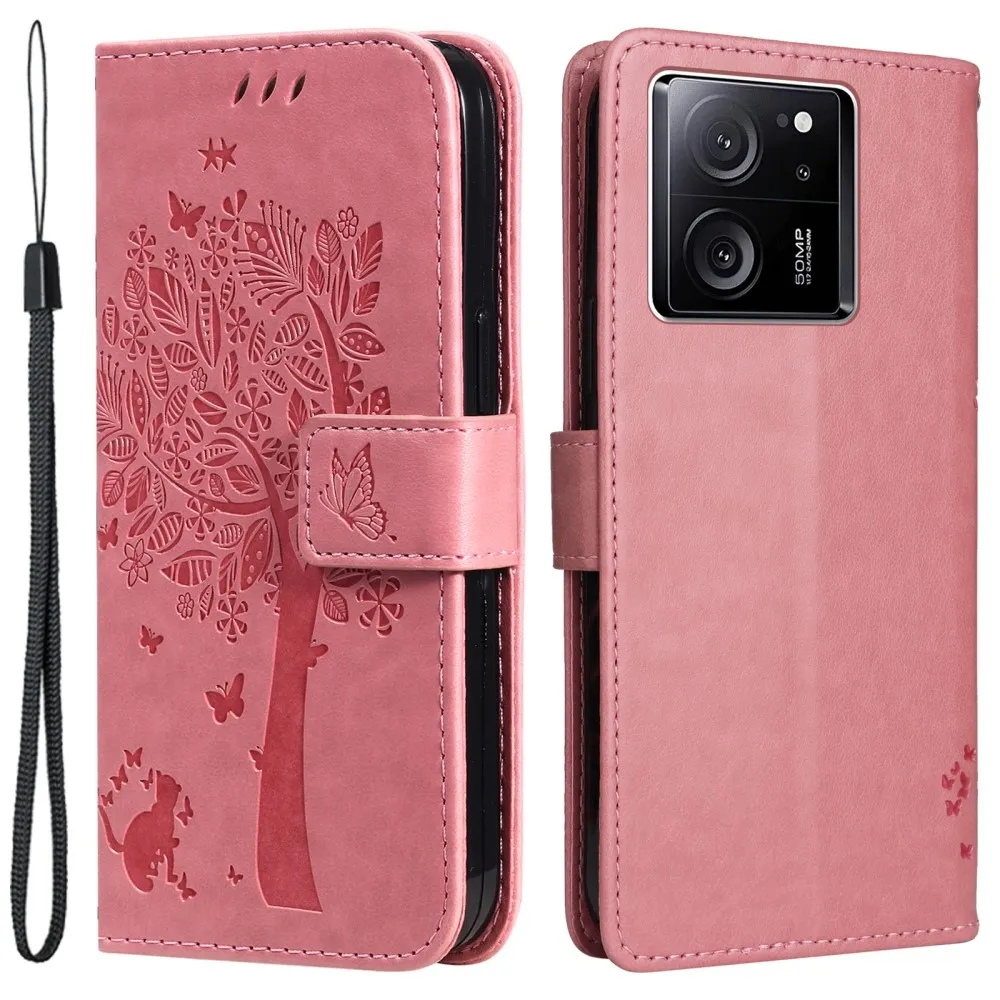 Rózsaszín pénztárca tok fa Xiaomi 13T/13T Pro számára