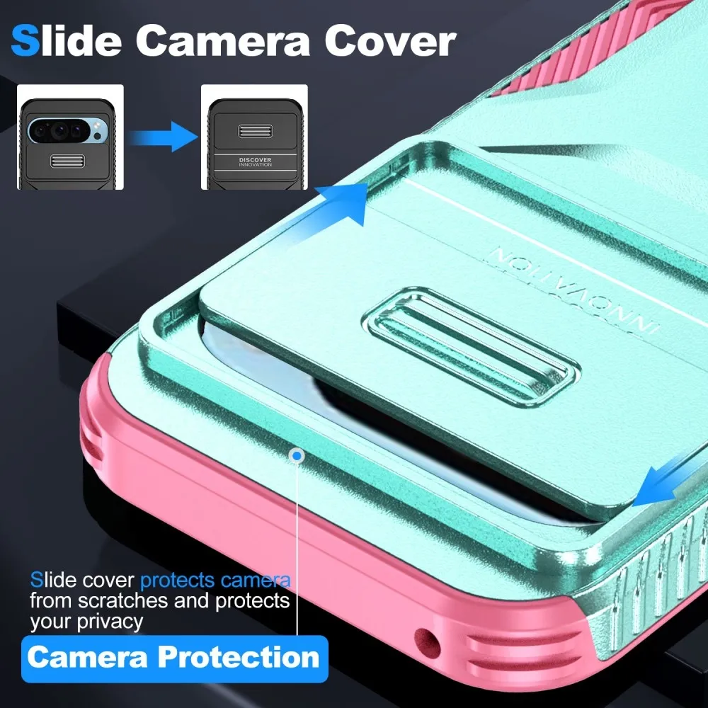 Kék-zöld és rózsaszín tartós fedél tok a Google Pixel 9/9 Pro számára