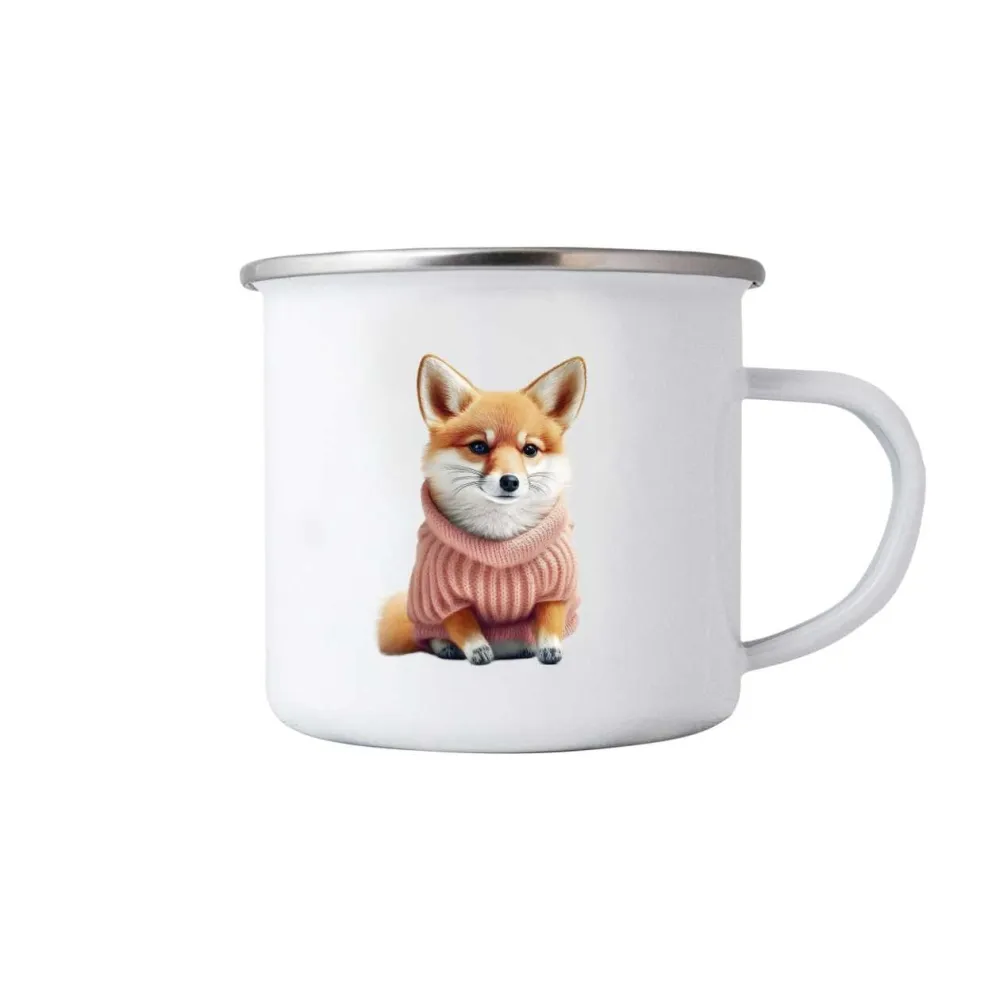 A rózsaszín pulóverbe bújt kedves kis rókácska barátságos és meleg hangulatú motívumot teremt a bögrén. A szőrzet és a kötött anyag apró részletei tiszta és harmonikus összhatást keltenek így a bögre könnyedén feldobja a reggeleket és a pihenőpillanatokat.