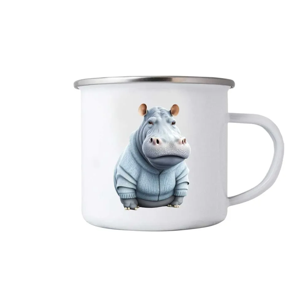A világoskék pulcsiba bújt, kedves víziló igazán barátságos hangulatot ad ennek a bögének. A finom színek és a részletgazdag kidolgozás játékos motívumot alkotnak amely egyszerre aranyos és vidám. Remek választás mindenkinek aki szereti az egyedi és bájos illusztrációkat.