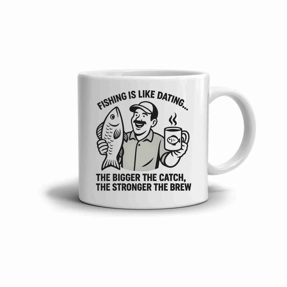 A vidám motív egy elégedett horgászt ábrázol zsákmánnyal és bögrével a kezében, emlékeztetve a vízparti nyugalom örömére. A rajzos stílus és a humoros hangulat mindenkit megszólít, aki szereti a horgászatot és a jókedvet. A bögre a halak, a pihenés és egy erős kávé szeretetét egyesíti egy sikeres nap után.