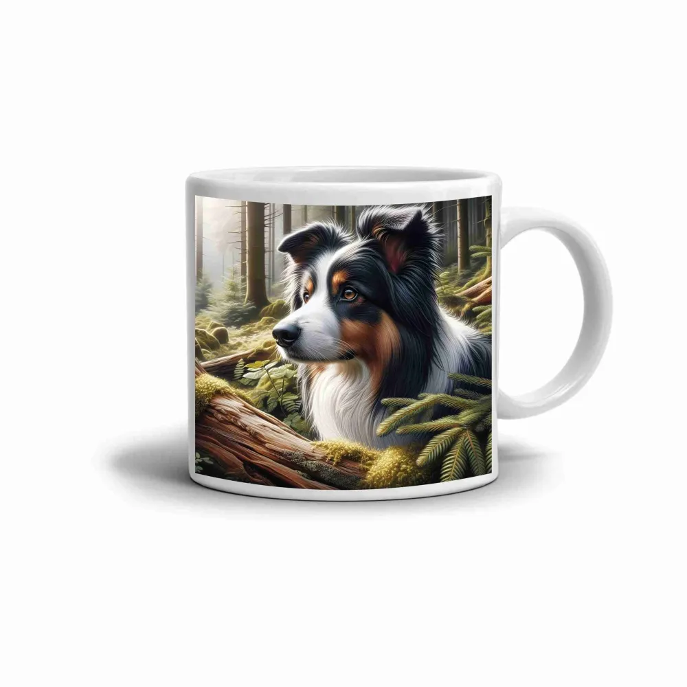 Az erdő csendjében, a reggeli fényben áll egy kutya éber tekintettel és nyugodt magabiztossággal. A bögre motívuma a hűség, az erő és a természetes elegancia érzését kelti. A szőrzet finom részletei és az erdei háttér harmonikus egységet alkotnak, amely a természet közelségét idézi.