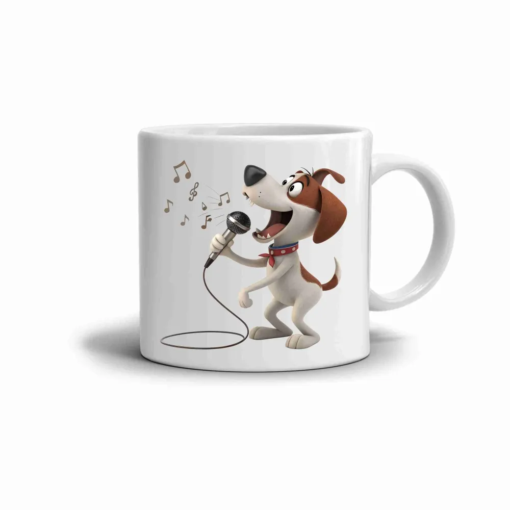 A vidám kutya, aki mikrofonnal a mancsában énekel, feldobja a reggeleket és mosolyt csal az arcokra. Az örömteli kifejezése és a körülötte szálló hangjegyek vidám, zenei hangulatot teremtenek. Ez a bögremotívum optimista kisugárzású, és energiát ad a reggeli kávé vagy az esti tea mellé.