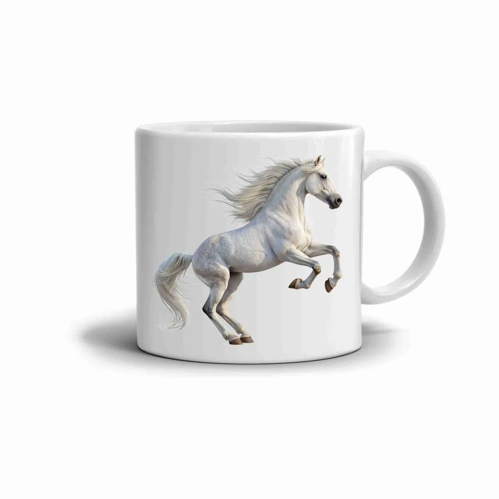 A fehér ló motívumával díszített bögre örömet szerez minden állatkedvelőnek, a természet és a szabadság rajongóinak. Tökéletes egyedi ajándék, amely az erő, az elegancia és a függetlenség szimbólumát viszi minden kortyba.