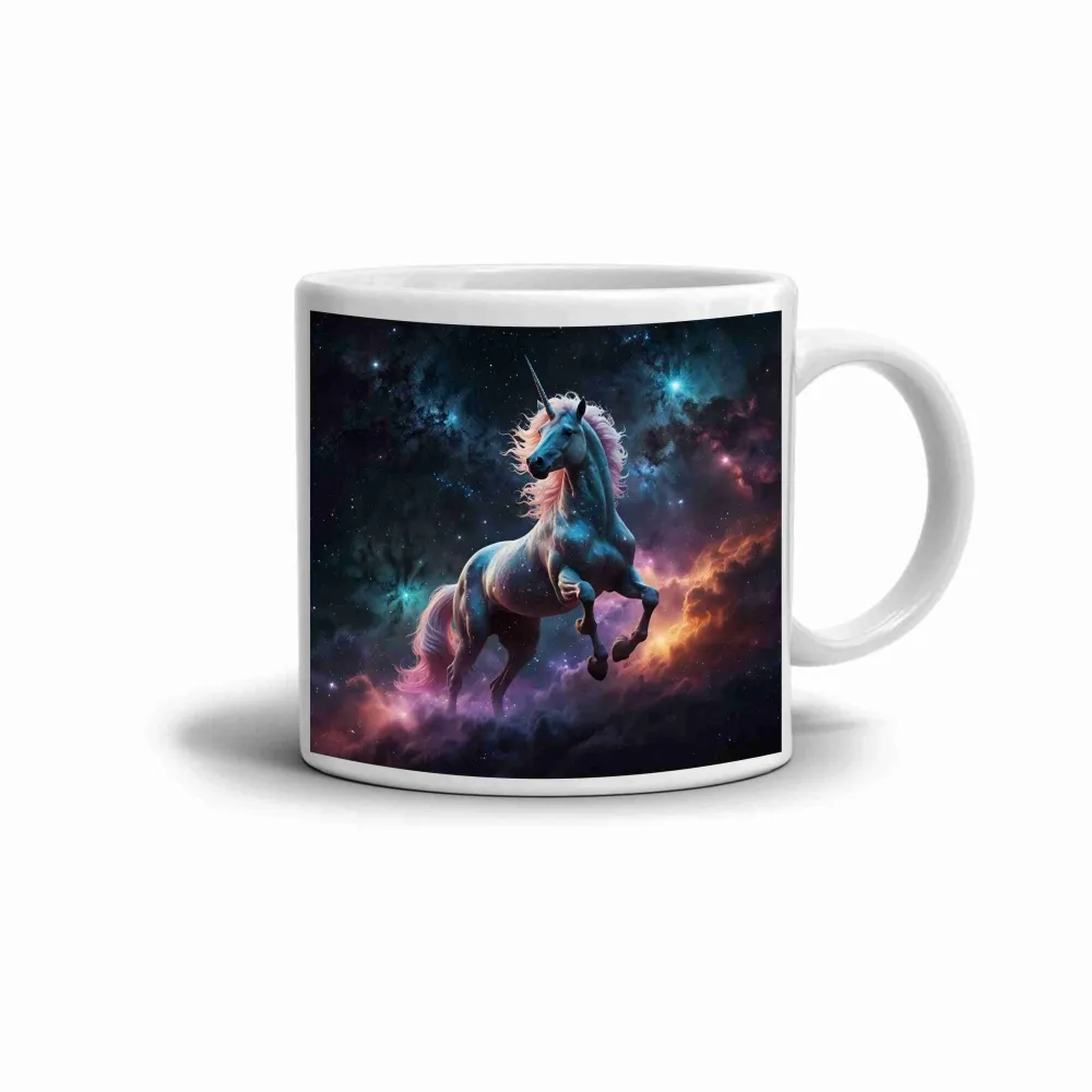 A nemes egyszarvú, aki a csillagok között vágtat, életre kelti a fantázia és az álmok varázsát. A bögre motívuma titokzatos és varázslatos hangulatot áraszt, a világegyetem sötét tónusait ötvözi a fény és az energia finom árnyalataival. Ez a kép a szabadságot, az erőt és a csodákba vetett hitet jelképezi.