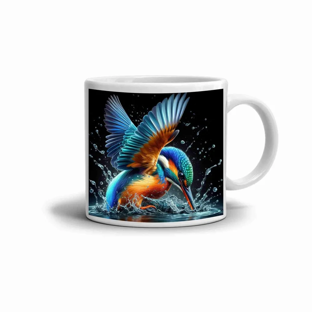 A természet ragyogó színei elevenednek meg ezen a bögrén, amelyen egy víz fölött repülő jégmadár látható. Ez a madármintás bögre egyszerre dinamikus és elegáns, energiát, szabadságot és a vadon szépségét hozza a mindennapokba. Az élénk kék és narancssárga árnyalatok lenyűgöző kontrasztot alkotnak, amely első pillantásra magával ragad.