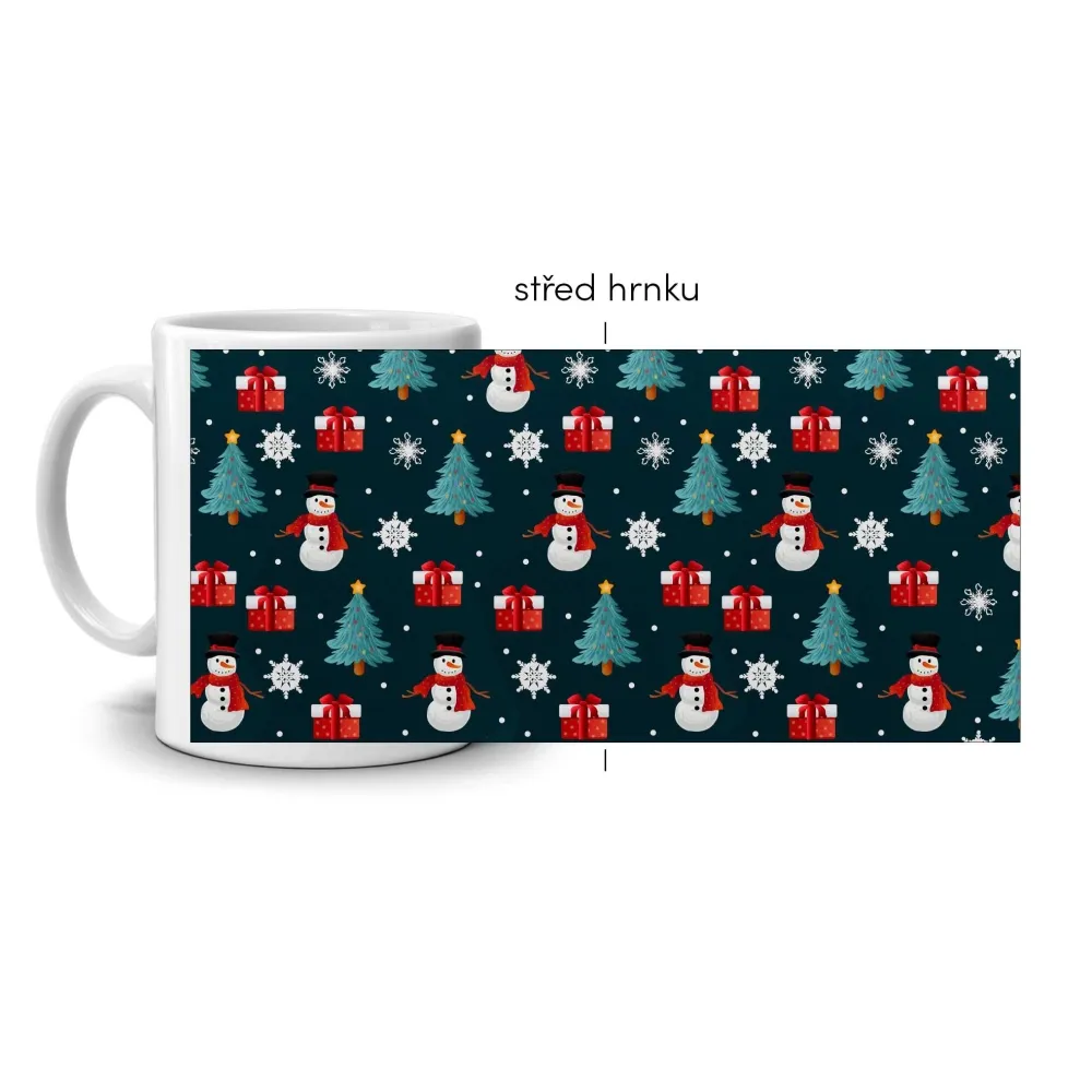 A karácsonyi bögre ünnepi hangulatot hoz a mindennapokba. Vidám hóemberek, ajándékok és karácsonyfák alkotják az egyedi motívumot, amely azonnal megteremti a karácsony érzését. Az élénk színek és a részletes kidolgozás fokozzák az örömteli és ünnepi hangulatot.