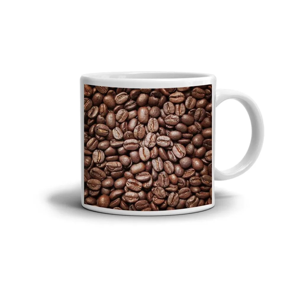 A bögrén élethű kávészemek motívuma látható, amely tökéletesen visszaadja a frissen főzött kávé illatát és hangulatát. A gazdag barna árnyalatok melegséget és nyugalmat sugároznak, míg a részletesen kidolgozott szemek textúrát és mélységet kölcsönöznek a dizájnnak. Ez a motívum minden kávérajongónak örömet szerez, aki stílusosan szeretné élvezni kedvenc italát.