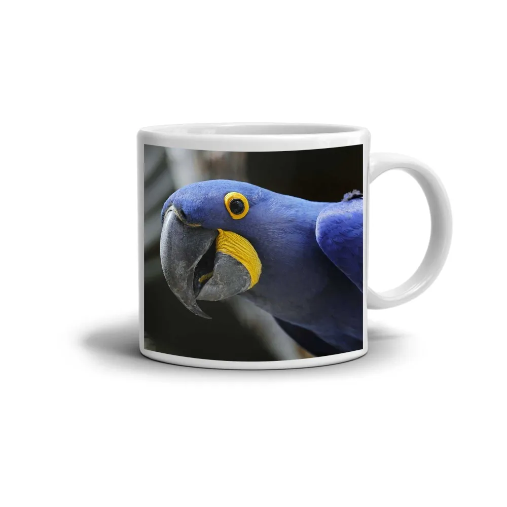 A lenyűgöző hialintkék arapapagájos motívum mély, intenzív kék árnyalatával ragadja meg a figyelmet, amely a szabadságot, az erőt és az eleganciát szimbolizálja. A szem és a csőr körüli sárga részletek látványos kontrasztot alkotnak, életre keltve a madár karakterét. Minden tollrészlet precízen kidolgozott, így a bögre élethű és különleges hatást kelt. Ez a motívum egy kis egzotikus hangulatot és trópusi varázst visz a mindennapokba.