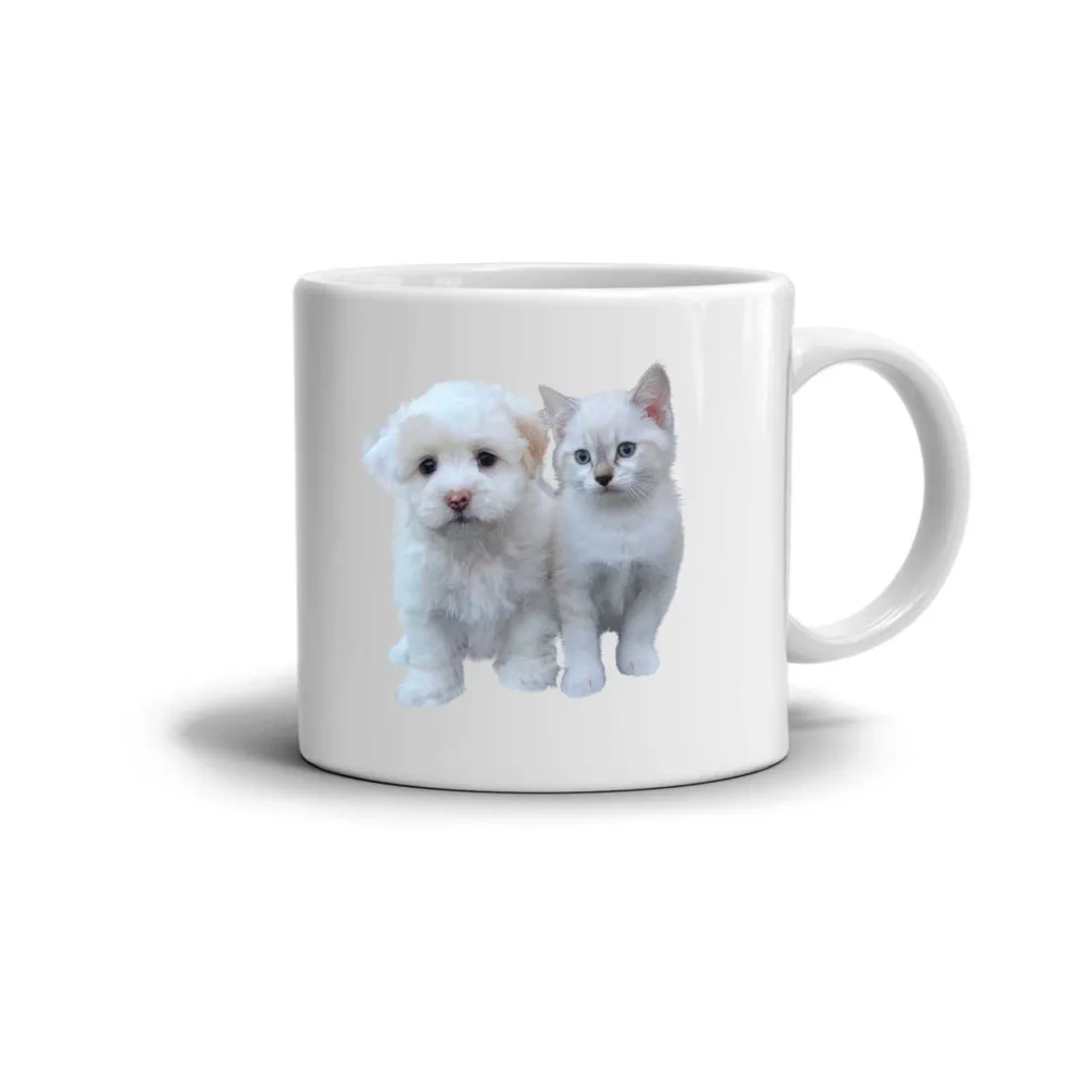 A bögre motívuma egy bájos kiskutya és kiscica párost ábrázol, akiknek kedves tekintete azonnal mosolyt csal az arcra. A bögre fehér felülete kiemeli bundájuk puhaságát, és nyugodt, harmonikus hangulatot teremt. Ez a motívum a barátságot, az ártatlanságot és a közös pillanatok örömét fejezi ki, így tökéletes kiegészítője lehet minden otthonnak.