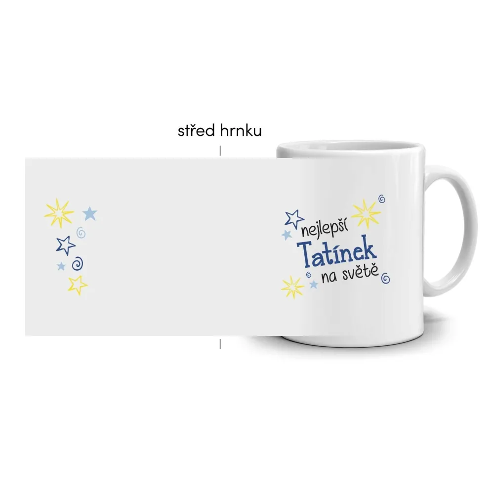 A fehér háttér kék és sárga csillagokkal friss és optimista hangulatot kelt. A motívum játékos módon ünnepli az apai rolu, és meleg érzelmeket közvetít. A csillagok vidám megjelenése energiát és derűt visz a mindennapokba, így a bögre kellemes társ lesz bármelyik reggelen.