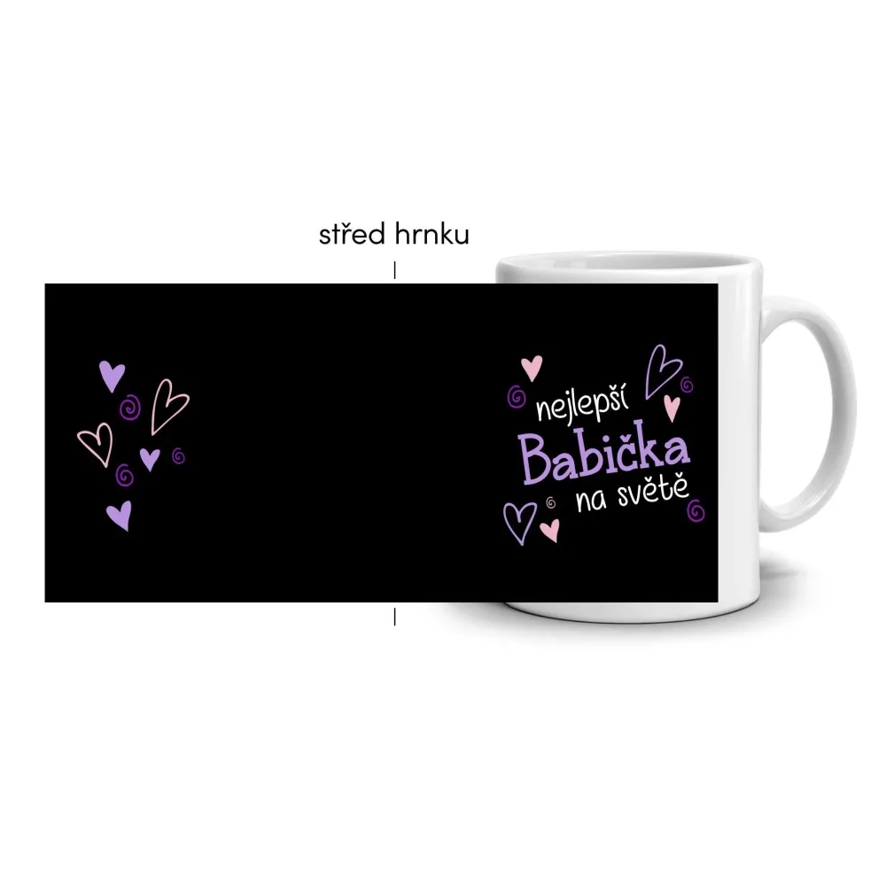 A fekete háttér és a lila-rózsaszín szívek kombinációja elegáns, mégis játékos hangulatot teremt. A motívum a szeretet, a gondoskodás és a hála kifejezése, amely minden nagymamát megillet. A finom vonalak otthonos érzetet keltenek, és kiemelik a családi melegség varázsát, amit ez a bögre tökéletesen szimbolizál.