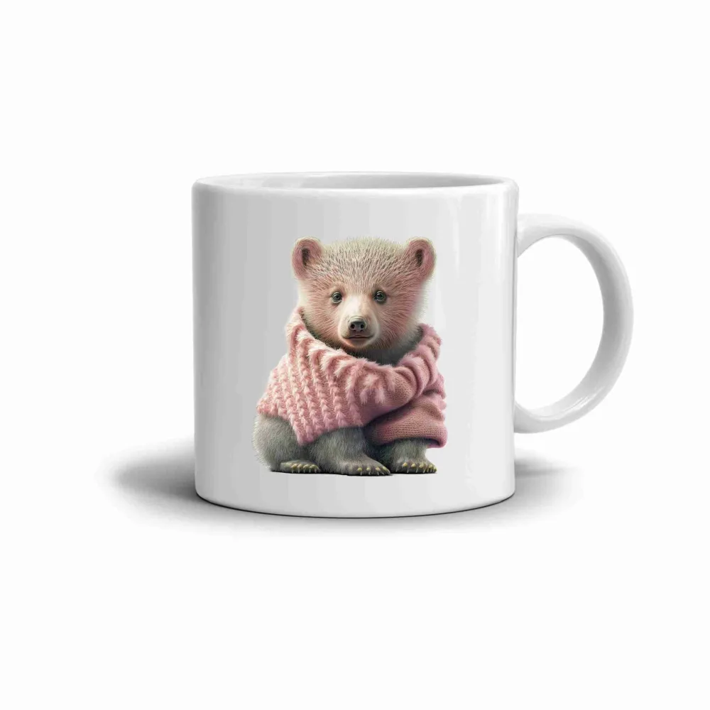 A bögrén egy kötött pulóvert viselő mackó jelenik meg, amely már első pillantásra nyugodt és barátságos hangulatot áraszt. A motívum finom és kiegyensúlyozott, mindenféle túlzás nélkül, így természetesen illeszkedik a mindennapi használathoz. Az összhatás meleg érzetet kelt, és jól passzol a lassú reggelekhez vagy a csendes estékhez egy forró ital mellett.
