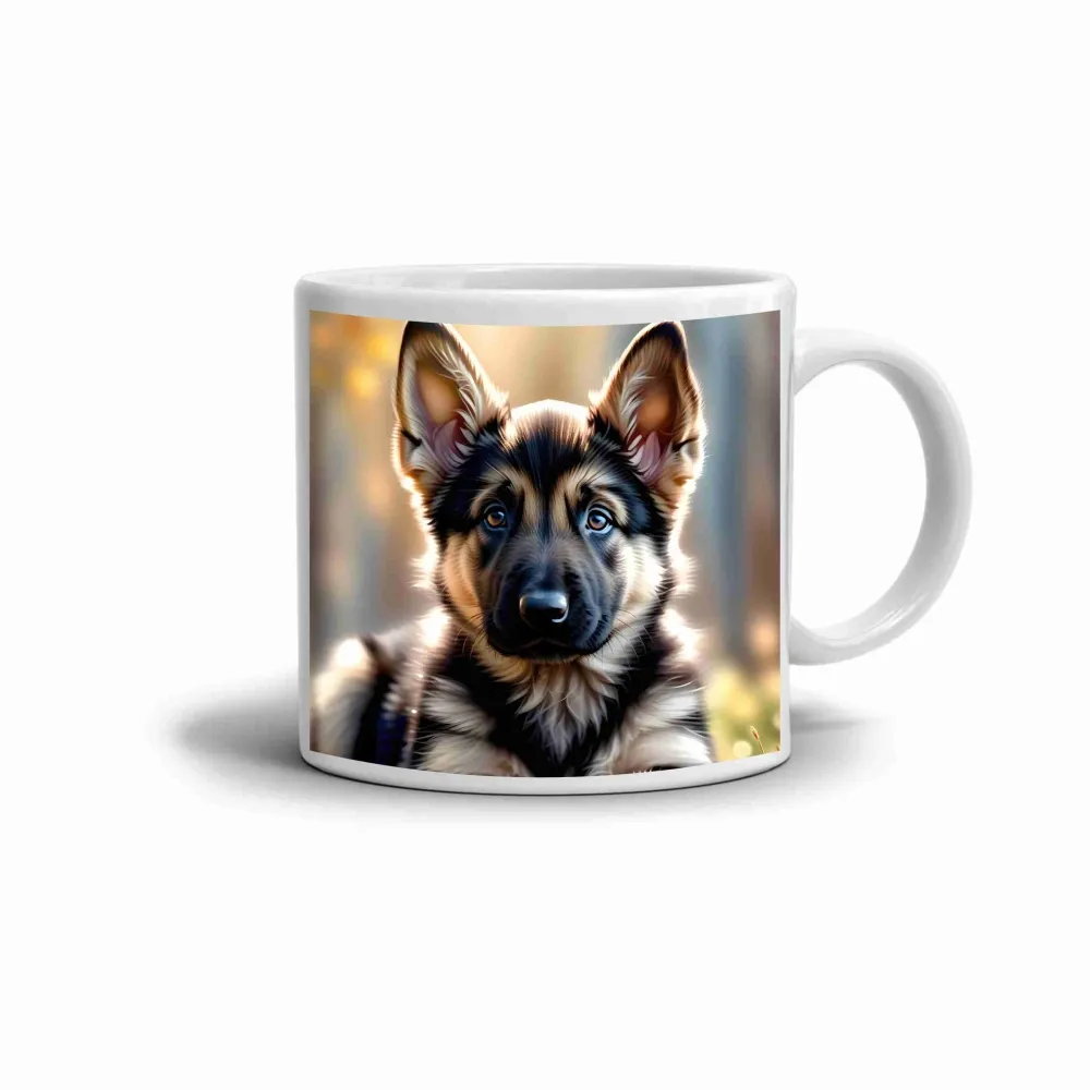 A bögre motívuma egy kíváncsi, vidám kiskutyát ábrázol, aki melegséget és kedvességet sugároz. Őszinte tekintete és bájos tartása természetes, szeretetteljes hangulatot teremt. A bundájára vetülő finom fény nyugalmat és pozitív energiát ad a jelenetnek, amely minden napot szebbé varázsol.