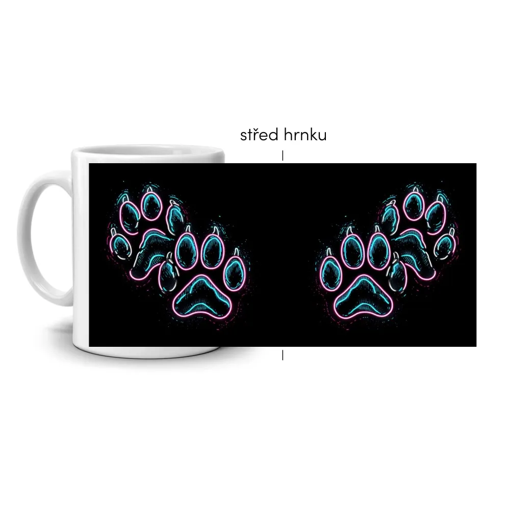 A neonfényes kutyamancs-motívum remek választás mindenkinek, aki szereti a kutyákat és a modern vizuális stílust. A bögre otthon és munkahelyen is jól mutat, és egyedi ajándékként biztosan örömet szerez.