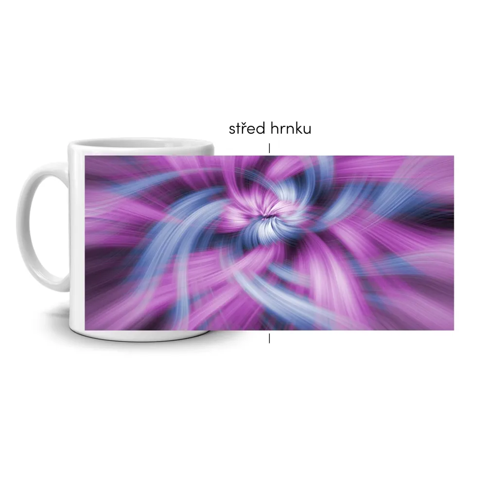 A rózsaszín, kék és lila lágy vonalai kellemes örvényszerű mintát hoznak létre ezen a bögrén, amely a finoman áramló fény érzetét kelti. A vonalak egy pont felé húzódnak, és nyugodt energiaként terjednek szét a felületen. Az egész motívum könnyed és modern hatást kelt, miközben élénk színeivel különlegessé teszi a bögrét.