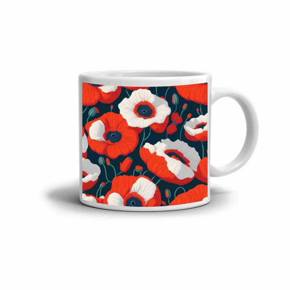 Az élénk mák mintája piros és fehér árnyalatokkal egy olyan motívumot alkot, amely friss, játékos és optimista hangulatot sugároz. A kontrasztos színek minden korty italhoz örömöt és vitalitást adnak, miközben az egész motívum a természet energiáját és szépségét idézi. Ez a bögre minden napba frissességet és harmóniát visz. Ideális azok számára, akik szeretik a virágokat és a színes, feltűnő mintákat.