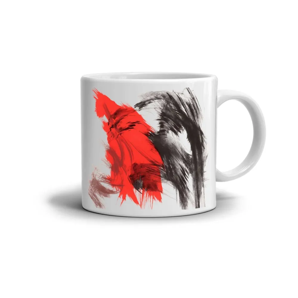 Az absztrakt motívum élénk vörös és mély fekete színek kombinációjával tűnik ki, amelyek erős kontrasztot és mozgásérzetet keltenek. A lendületes ecsetvonások az energia, az erő és a spontán művészi kifejezés világát idézik. A bögre motívuma modern és merész, tökéletes választás mindazoknak, akik szeretik az egyediséget és a művészi stílust.
