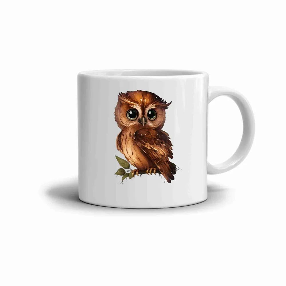 A bögre motívja egy bájos baglyot ábrázol, aki egy ágon ül, és egyszerre sugároz bölcsességet és barátságosságot. A meleg barna árnyalatok és a kifejező zöld szemek harmonikus kontrasztot alkotnak, így a motívum élénk és magával ragadó hatást kelt. A tollak részletes kidolgozása eleganciát és természetes szépséget kölcsönöz a bögrének. Ez a motívum minden természetkedvelőt megszólít, és kellemes, nyugtató hangulatot teremt.