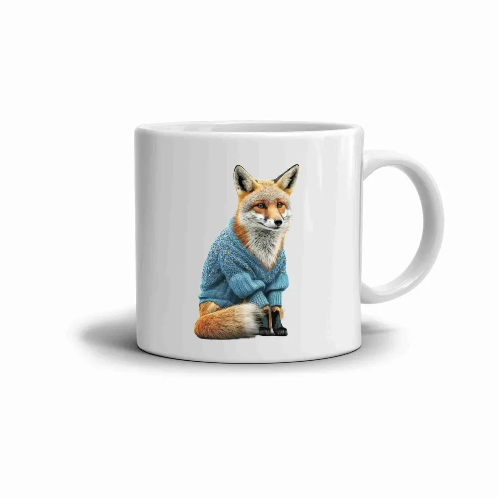 A pulóvert viselő róka letisztult és nyugodt hangulatú motívumként jelenik meg a bögrén. Az illusztráció kiegyensúlyozott és természetes hatást kelt, felesleges díszítés nélkül. Az összhatás könnyen illeszkedik a mindennapi használathoz, és kellemes légkört teremt a pihenés pillanataiban.
