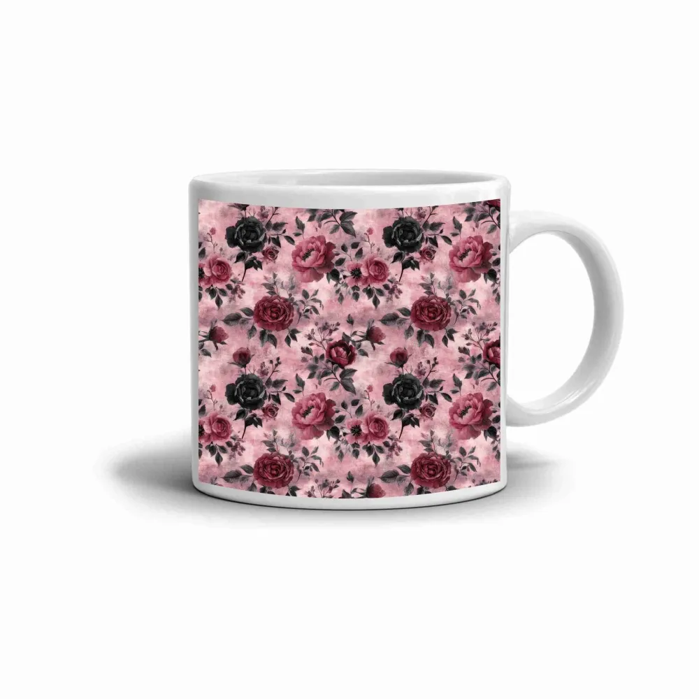 A fekete és rózsaszín virágok kombinációja a lágy rózsaszín háttéren elegáns és romantikus hatást kelt. Ez a virágmintás motívum stílusos megjelenést kölcsönöz a bögrének, és ötvözi a klasszikus szépséget a modern bájjal. A színek kontrasztja kiemeli a részleteket, így a bögre egyedi kiegészítővé válik a mindennapi pihenéshez.