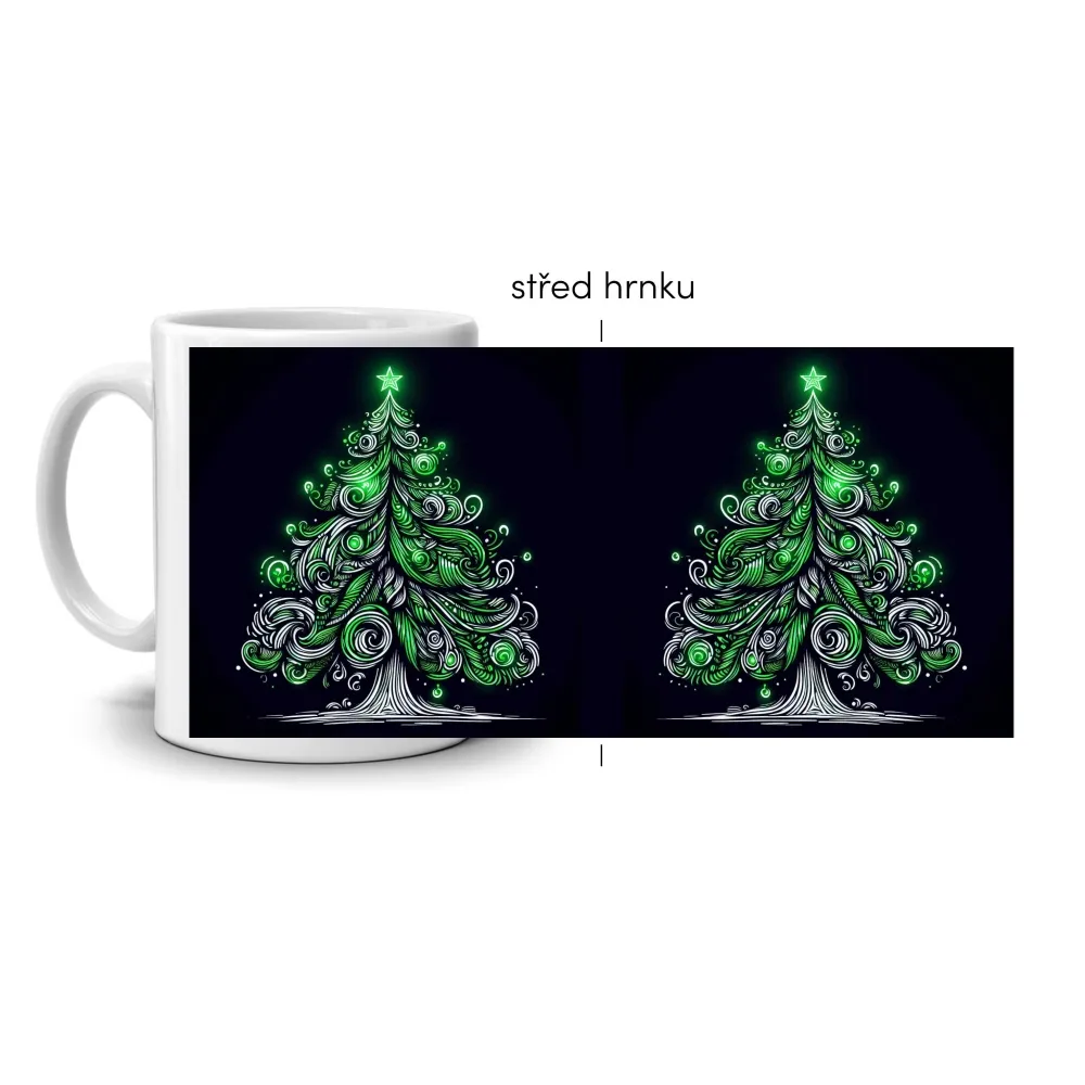 A ragyogó zöld fényhatások különleges hangulatot adnak ennek az ünnepi motívumnak, amely azonnal magára vonja a figyelmet. A díszes vonalakkal és finom spirálokkal kialakított karácsonyfa modern, mégis meghitt hatást kelt. Az élénk színek és a fénylő részletek ünnepi, kellemes téli atmoszférát sugároznak.