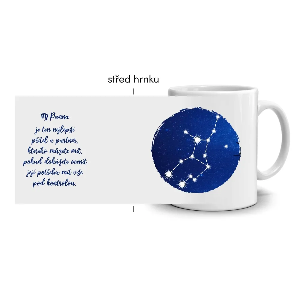 A szűz csillagjegy motívumával díszített bögre mindenkit megszólít, aki értékeli a megbízhatóságot és a nyugalmat. A szűz a legjobb barát és társ, ha képes vagy értékelni szükségét, hogy mindent kézben tartson. A sötétkék háttérre helyezett csillagkép a rendet, tisztaságot és átgondoltságot jelképezi, amelyek ennek a jegynek a fő jellemzői.