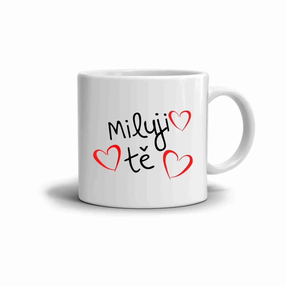 A bögre finom, romantikus motívuma kedves és személyes hangulatot teremt. A fekete felirat és a piros szívek játéka vidám és gyengéd megjelenést ad, amely szavak nélkül is képes kifejezni a szeretetet. Remek választás, ha szeretné valakinek finoman megmutatni, milyen fontos az Ön számára.