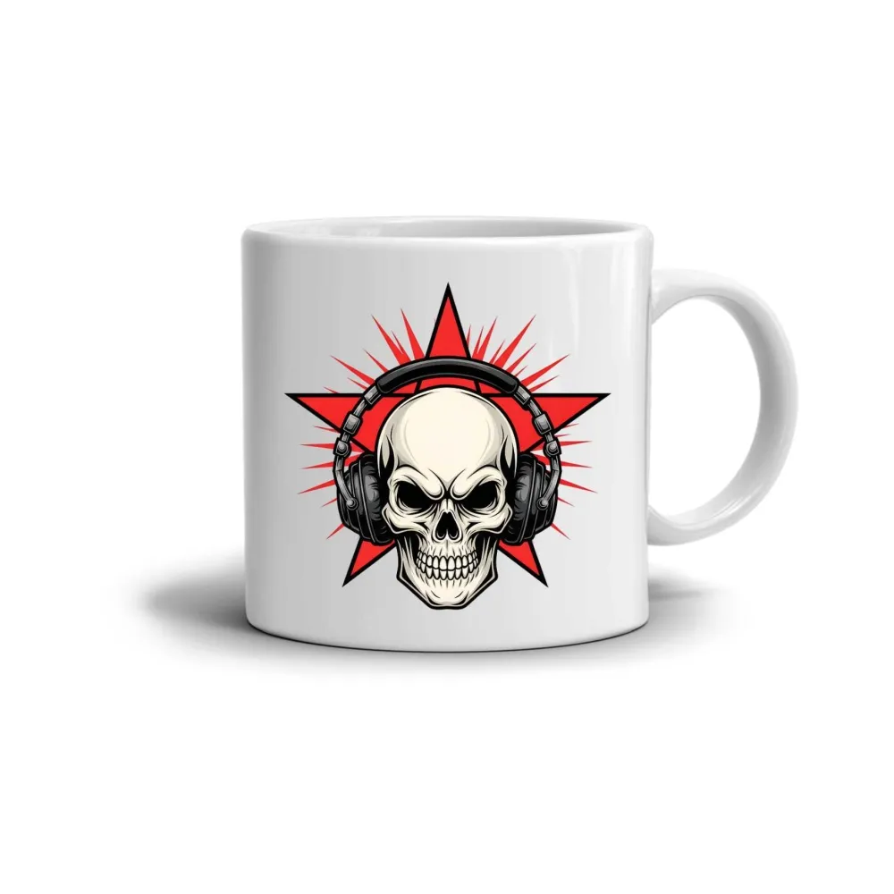 A bögrén egy feltűnő koponya fejhallgatóval motívum látható, amelyet egy piros csillag egészít ki a háttérben. A dizájn energikus és modern, a szabadság, a ritmus és a zene iránti szenvedély szimbóluma. Ez a minta mindenkit megszólít, aki kedveli a merész stílust és az egyedi, karakteres kiegészítőket.