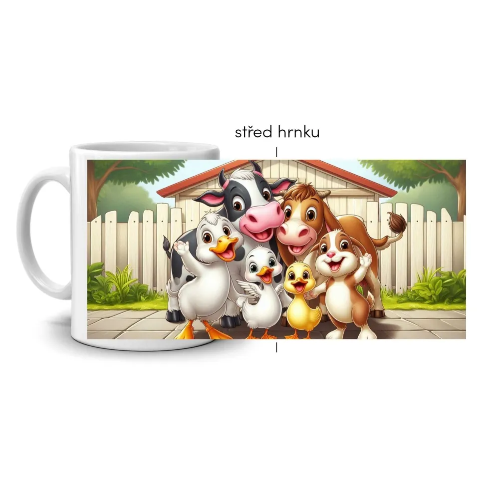 A vidám állatos motívum a tanyáról játékosságot, optimizmust és örömöt hoz minden napba. A mosolygós tehén, ló, kiskacsák és kutyus barátságos hangulatot teremtenek, tele energiával és jókedvvel. Ez a bögre gyerekeknek és felnőtteknek egyaránt örömet szerez, akik szeretik az állatokat és a bájos rajzolt mintákat.