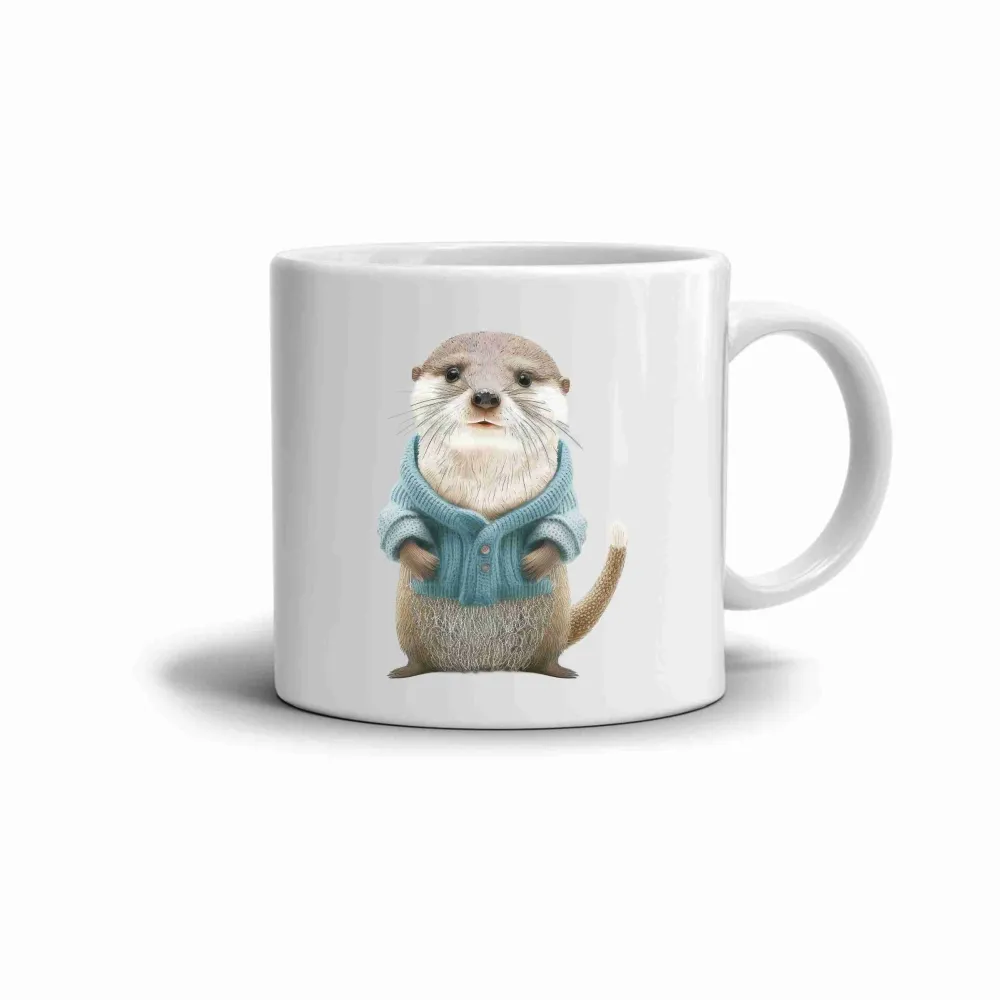 A bögrén egy kötött pulóvert viselő vidra látható, amely barátságos és nyugodt benyomást kelt. A motívum finoman játékos, ugyanakkor kiegyensúlyozott és kellemes megjelenésű. Az összhatás kellemes hangulatot teremt, amely jól illik a mindennapi kávé vagy tea melletti pillanatokhoz.