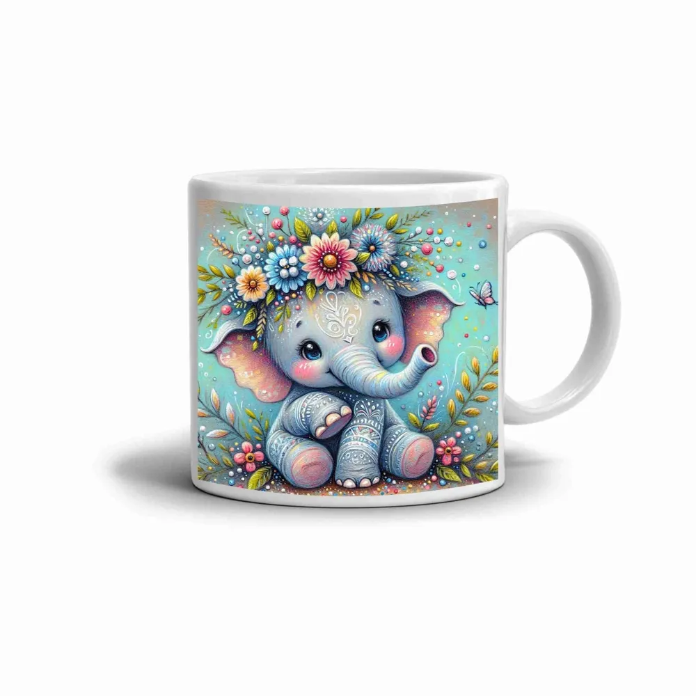 A kis elefánt virágokkal körülvéve vidám és aranyos motívumot alkot, amely örömet, pozitív energiát és színes akcentust visz a mindennapokba. A finom részletek és a pasztell színek élénk, vonzó megjelenést biztosítanak a mintának. Ez a kerámia bögre gyerekeknek és felnőtteknek egyaránt tetszeni fog játékosságával és esztétikus kivitelezésével.
