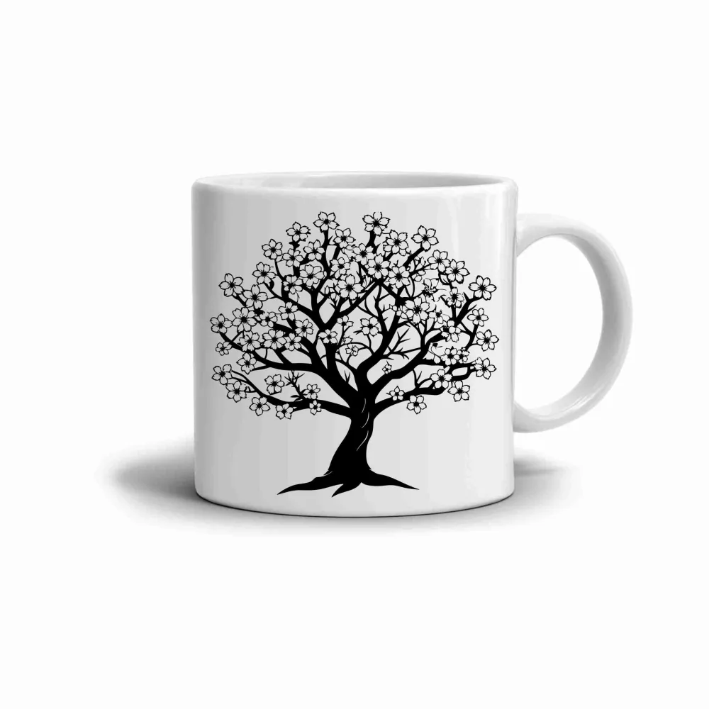 A fekete-fehér, virágzó fát ábrázoló motívum nyugalmat és eleganciát sugároz. A motívum a természethez való kapcsolódást fejezi ki, emlékeztetve annak erejére és finom szépségére. A törékeny virágok és az erős ágak kontrasztja tökéletes egyensúlyt teremt lágyság és stabilitás között. A bögre letisztult stílusa azoknak szól, akik értékelik az egyszerűséget és a természetes szépséget.