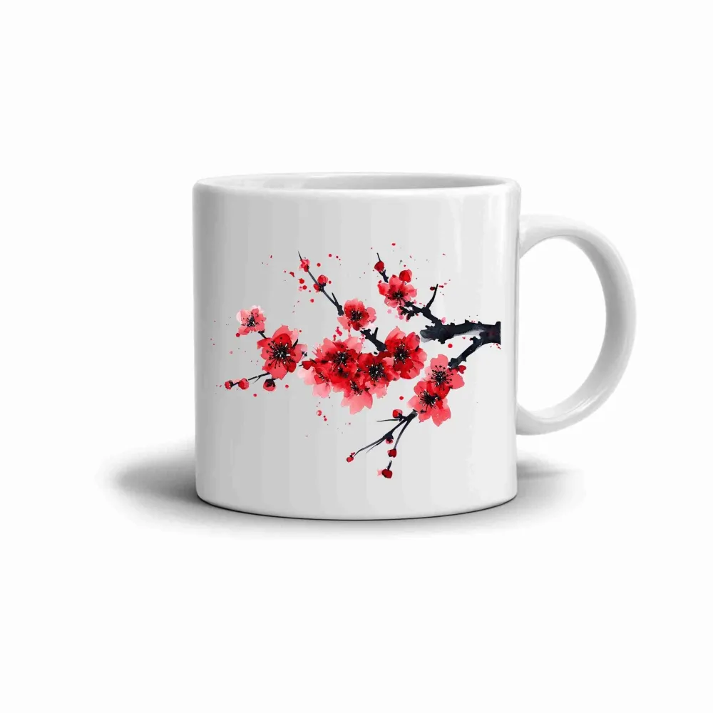 A japán cseresznyevirág motívuma egyszerre finom és kifejező, eleganciát és harmóniát sugároz. A mélypiros virágok és a sötét ágak kontrasztja lenyűgöző vizuális hatást kelt, amely művészi jelleget és nyugodt hangulatot kölcsönöz a bögrének. Ez a dizájn a tavaszi természet szépségét idézi, és a megújulás és remény szimbóluma.