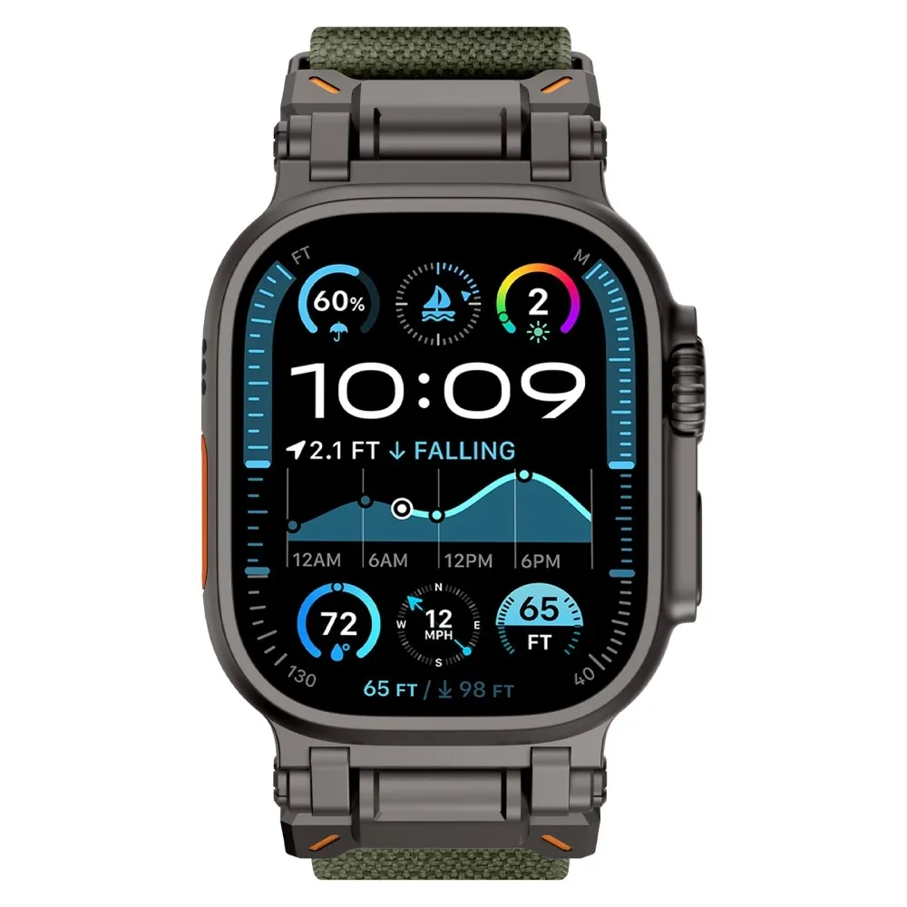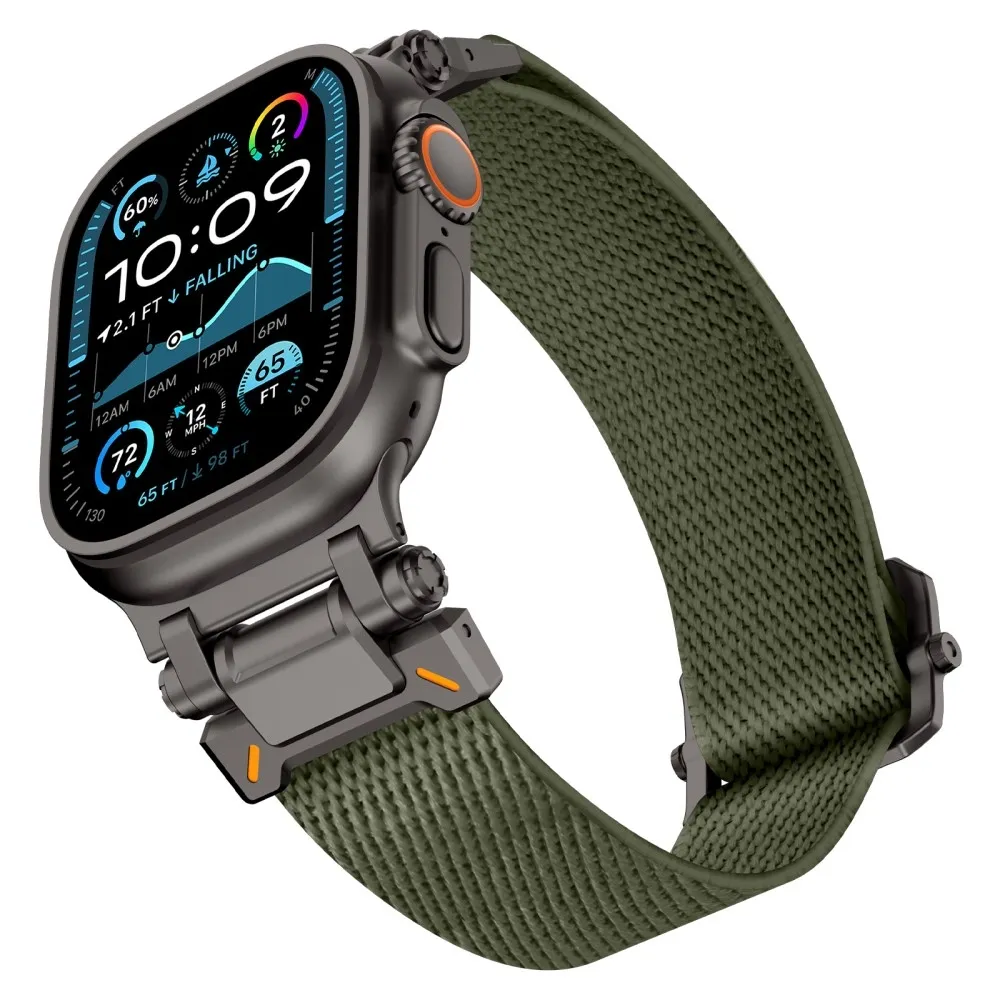 Fém nejlon szíj Apple Watch Ultra/Ultra 2 49mm/SE/SE 2022/2023 44mm/10 46mm/9/8/7 45mm/6/5/4 44mm/3/2/1 42 mm-es Apple Watch Ultra/Ultra 2 órához - zöld színű