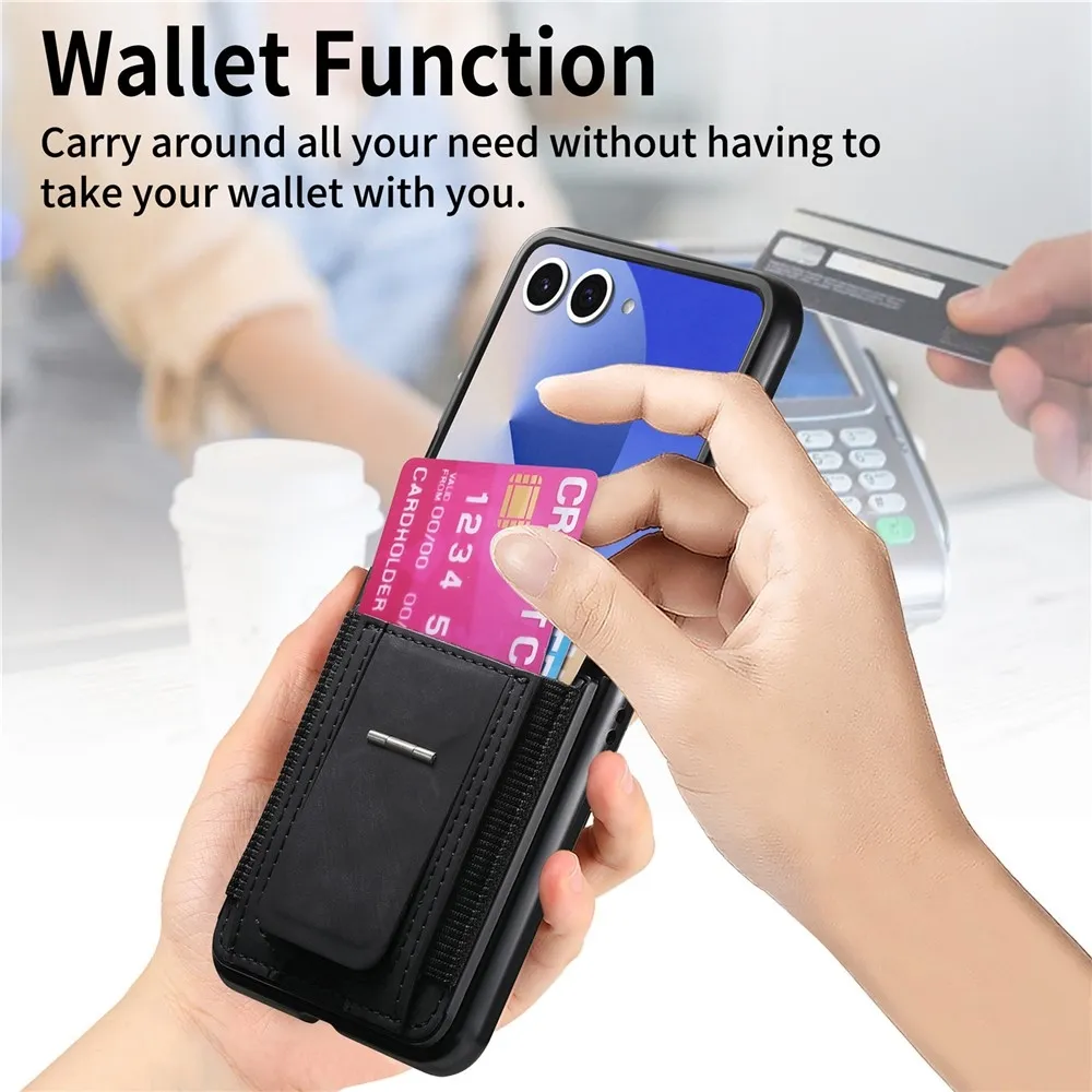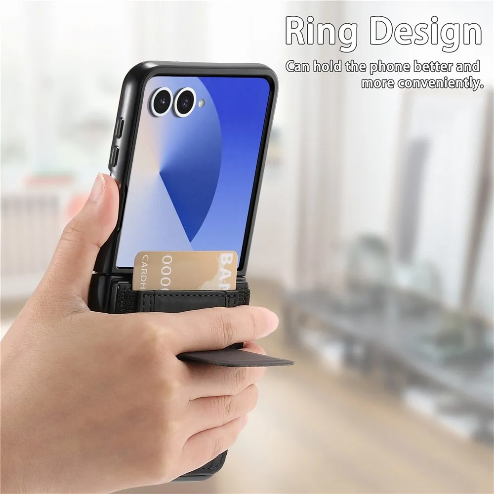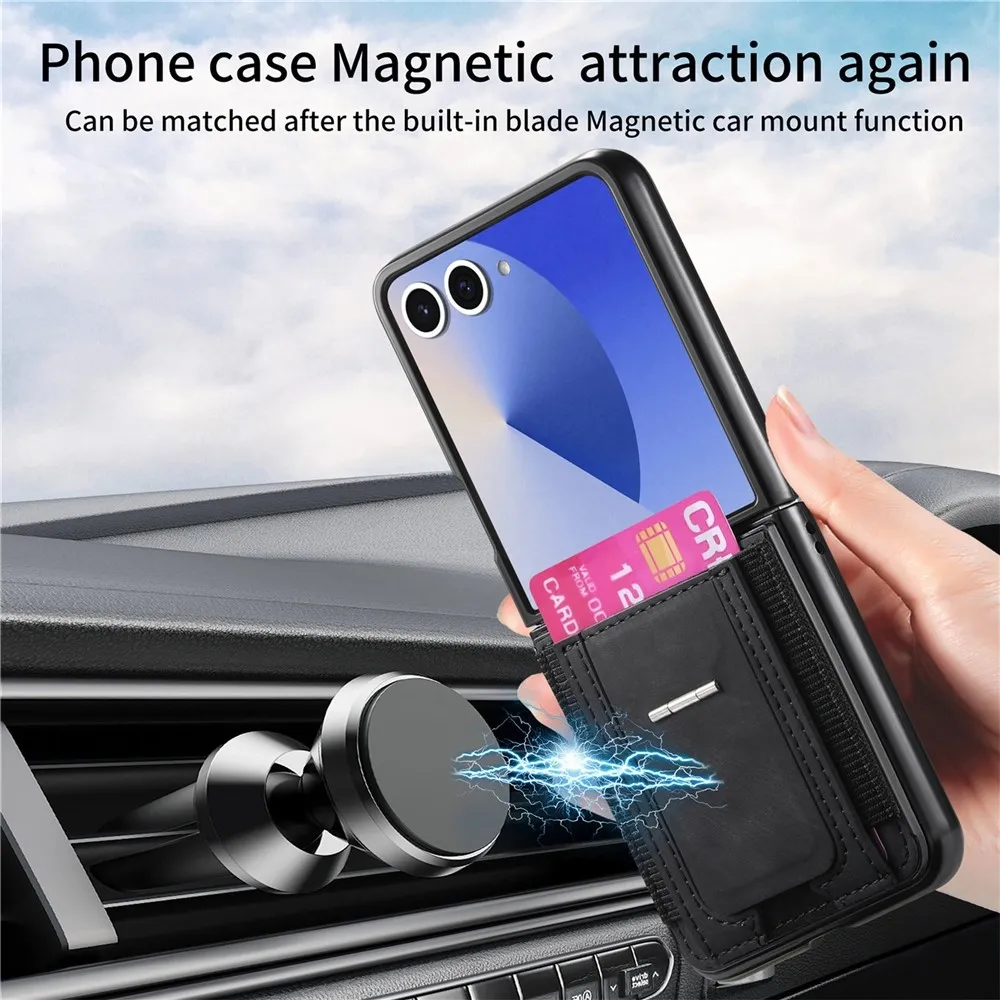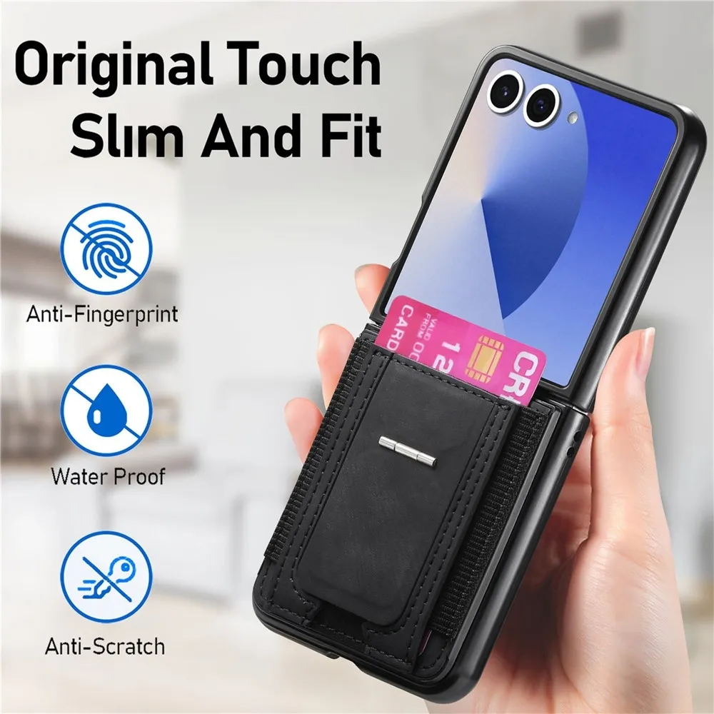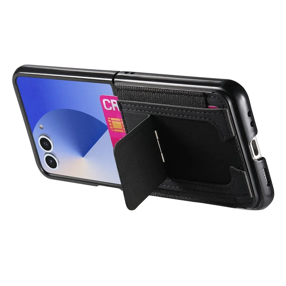 Fekete műanyag tok luxus műbőrrel a Samsung Galaxy Z Flip7 5G számára