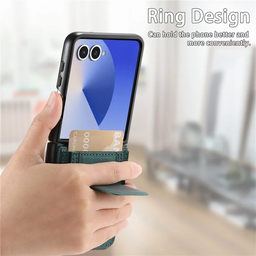 Fényűző műanyag borítás műbőrrel Samsung Galaxy Z Flip7 5G készülékre - zöld