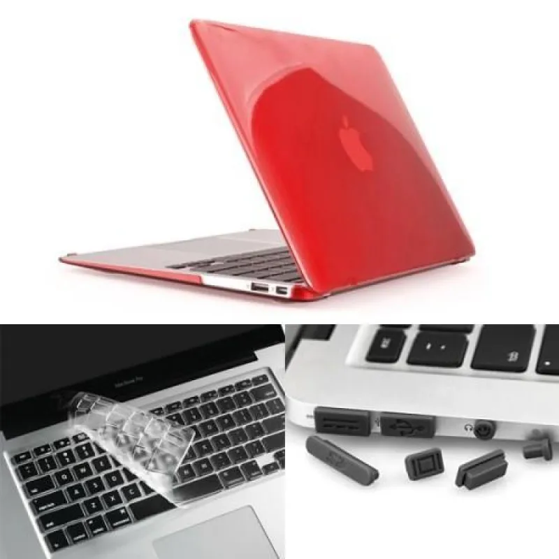 Fényes műanyag tok, porvédő és billentyűzetvédő készlet MacBook Air 13.3 - piros