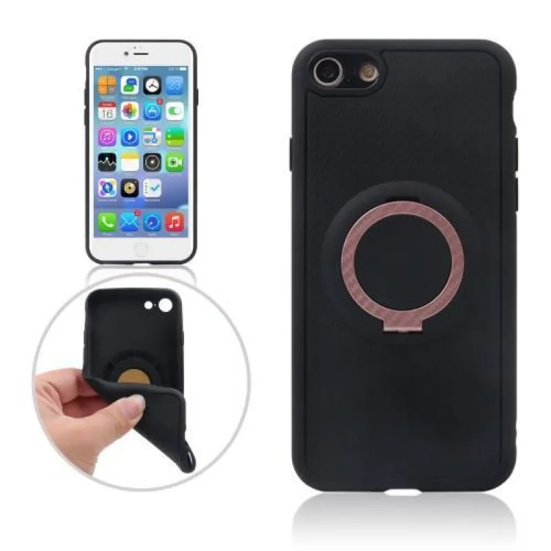 Fekete szilikon borítás rózsaszín gyűrűvel iPhone 7 vagy iPhone 8 készülékhez