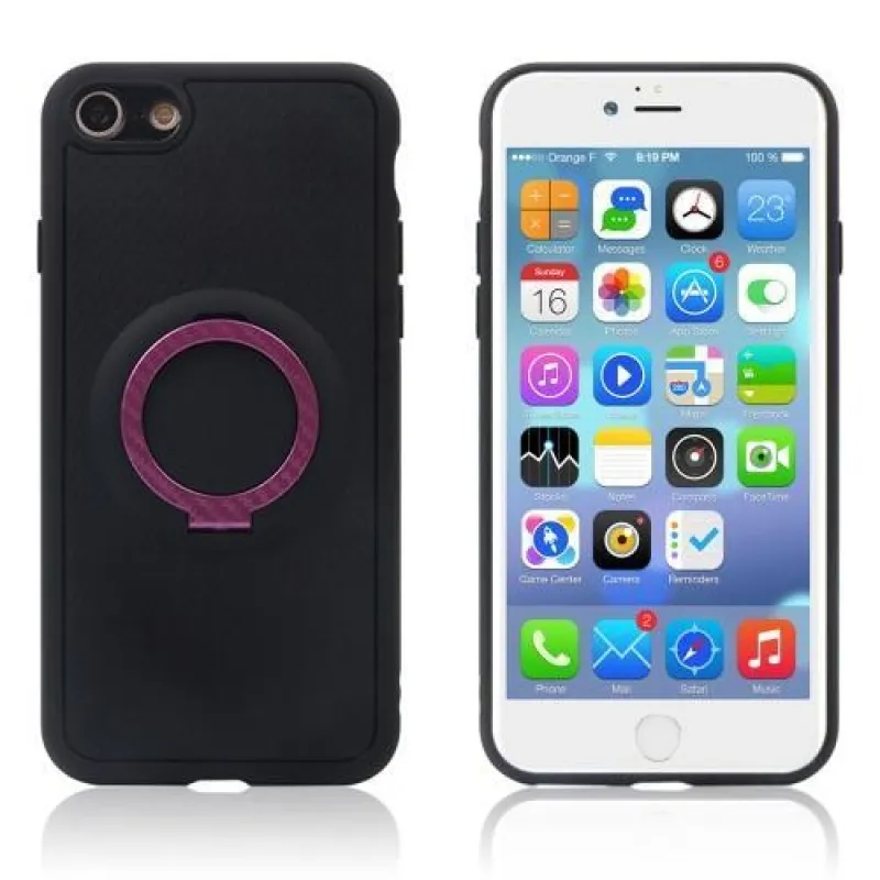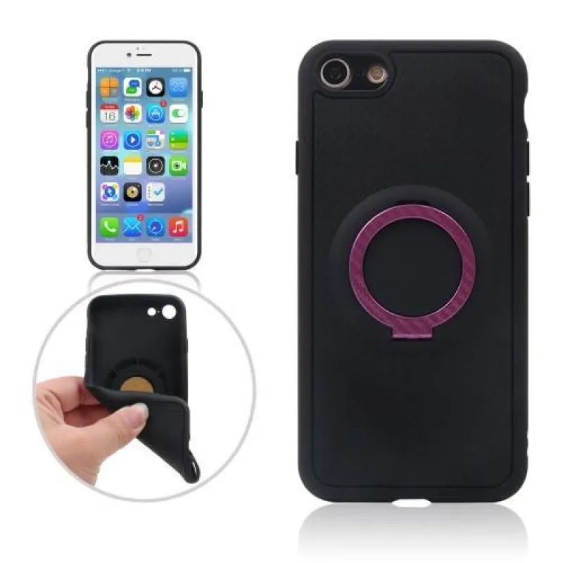 Fekete szilikon borítás rózsaszínű gyűrűvel iPhone 7 vagy iPhone 8 készülékhez