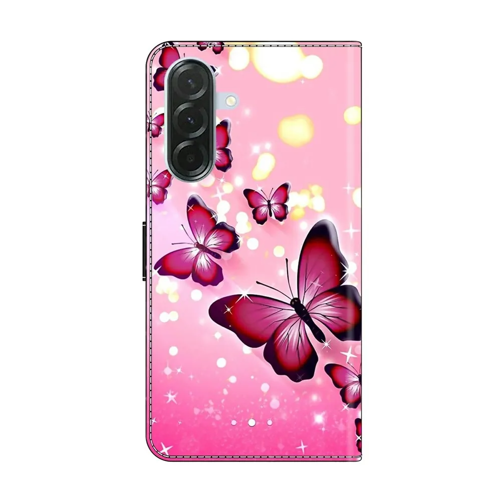 Határozottan pénztárca tok Samsung Galaxy A57 5G és rózsaszín pillangókhoz