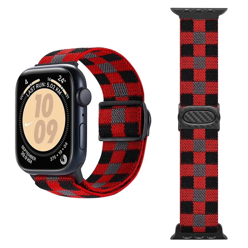 Fokozatos nejlon szíj Apple Watch Ultra/Ultra 2 49mm/SE/SE 2022/2023 44mm/9/8/7 45mm/6/5/4 44mm/3/2/1 42 mm - piros kockák
